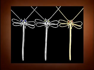 As carefree as a bird, the gracious dragonfly rests on your neck, brushes against your ears or wraps around your finger. Elegant and slender, her colorful eye sparkles with enamel.